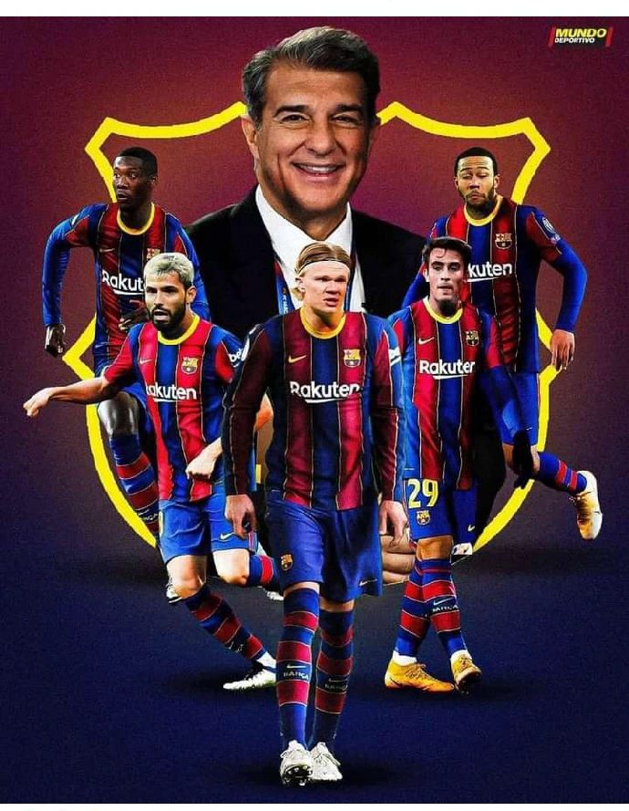 Barcelona President is now looking to snap up Borussia Dortmund Sensational Striker and the player in form the most currently in football, Erling Haaland, Out of Contract Manchester City all time goal scorer Sergio Aguero, Manchester City Eric Garcia, Out of Contract Lyon Striker Memphis Depay, out of Contract Bayern Munich defender, David Alaba, and Out of Contract Liverpool Midfielder, Wijnadum.